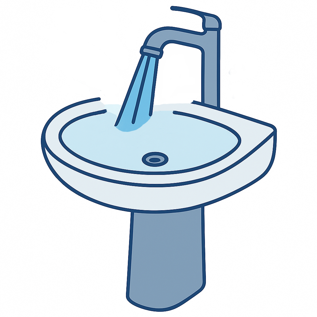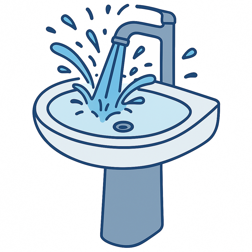- Umgebung und Kleidung werden beim Händewaschen schnell nass
